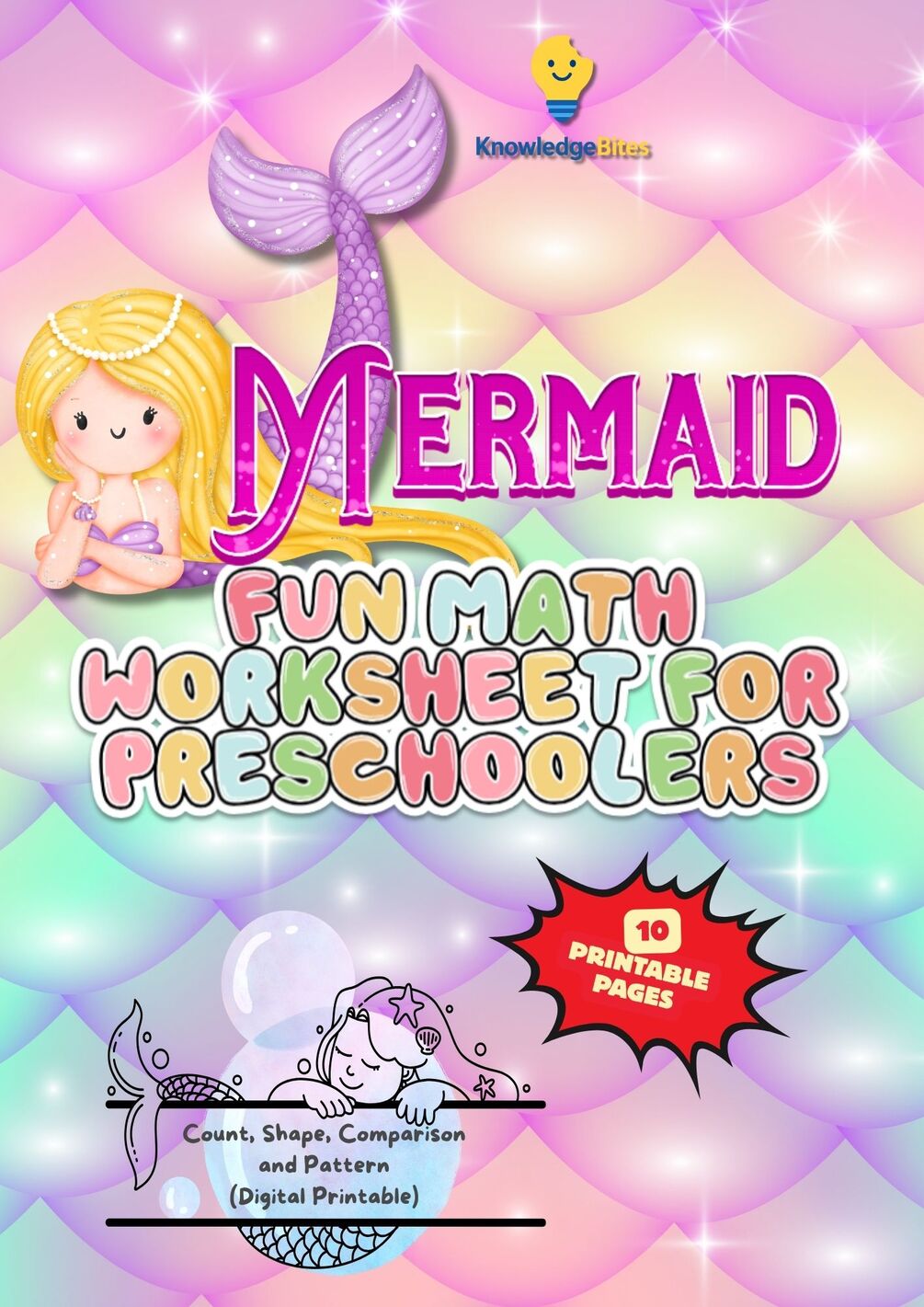 Mermaid Math Activity Book for Kids | Counting, Shapes, Comparisons & Patterns | Printable Preschool & Kindergarten Worksheets