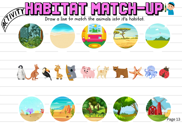 Discover where animals live and thrive! This 14-page ebook introduces kids to different habitats, filled with colorful illustrations and fun facts — making learning about nature exciting, simple, and educational.
